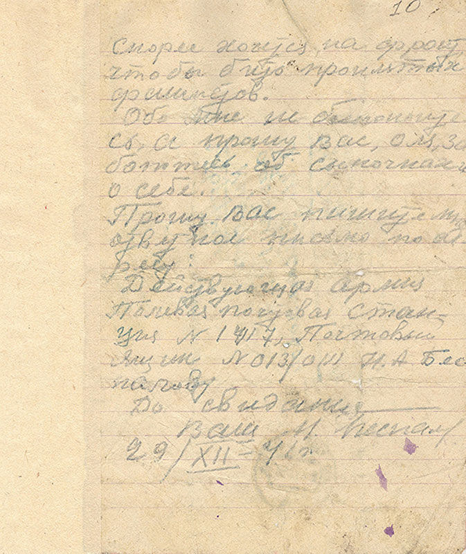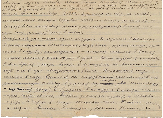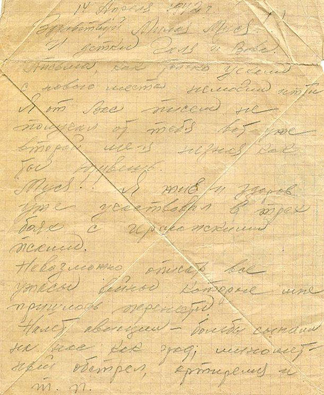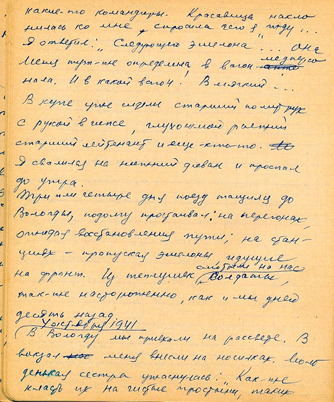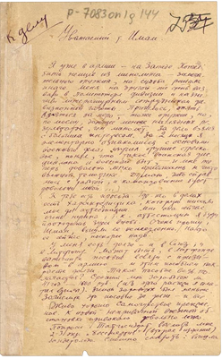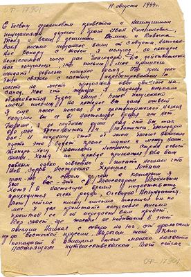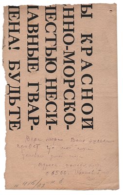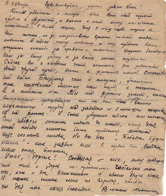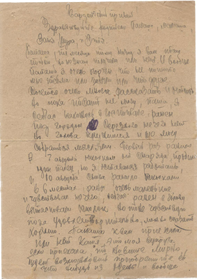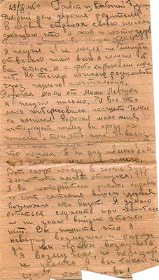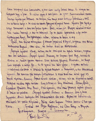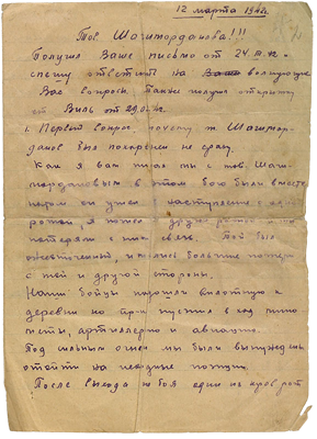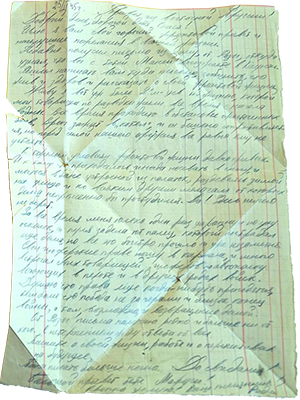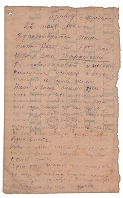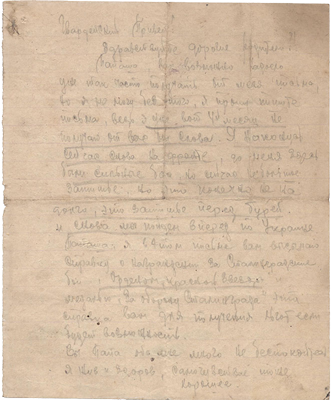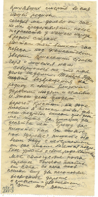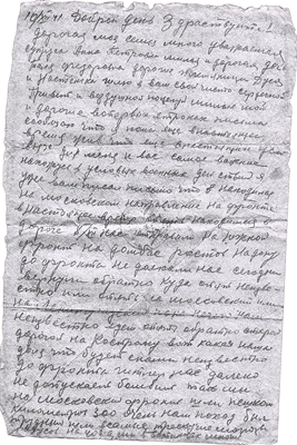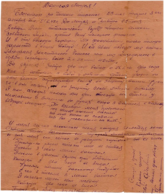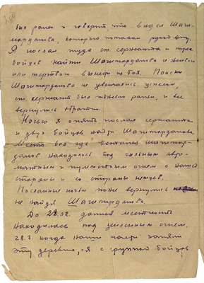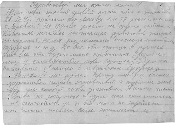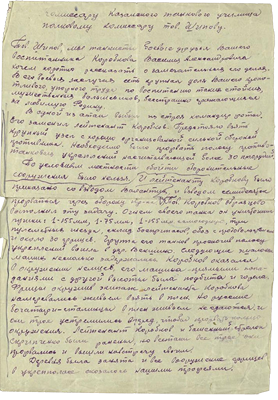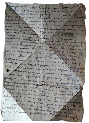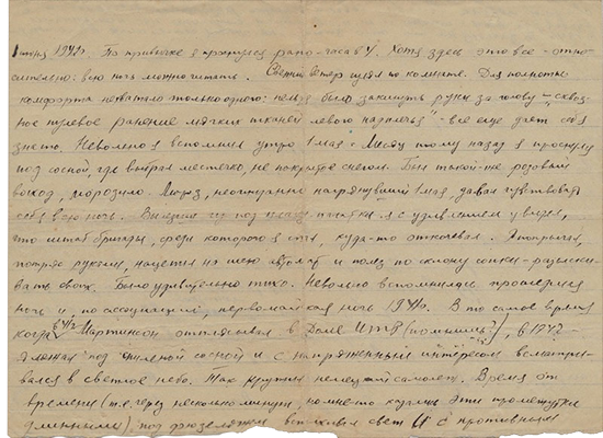 История одного бойца. Он принимал участие в операции, был ранен, отправлен в госпиталь в Вологду, где узнал о начале контрнаступления под Москвой. Автор и адресат неизвестны. Похоже на дневник