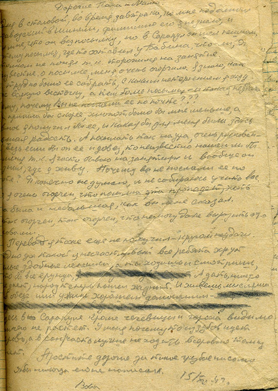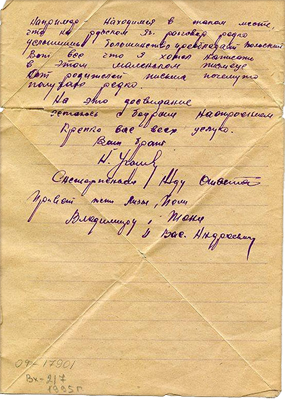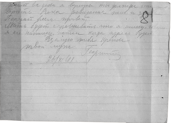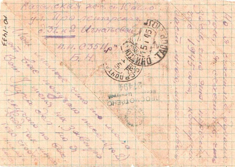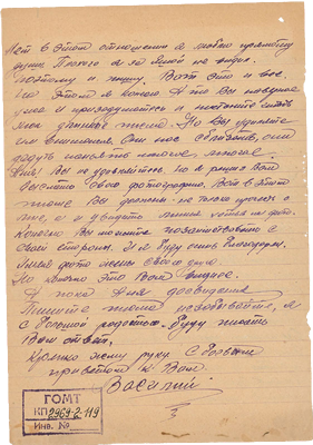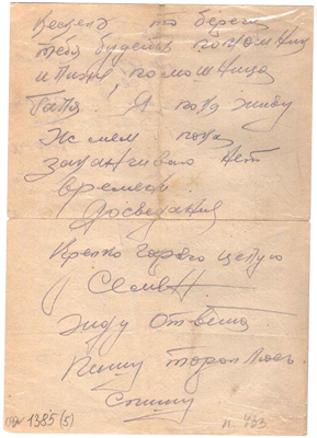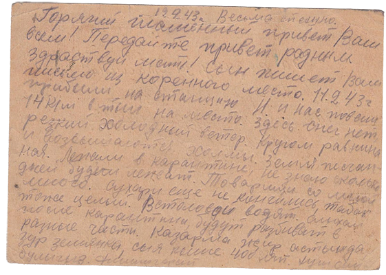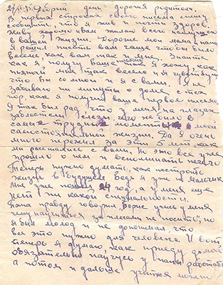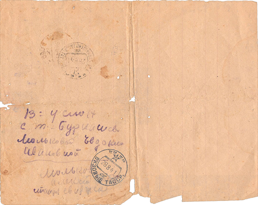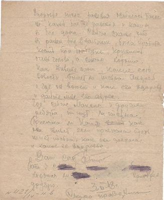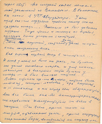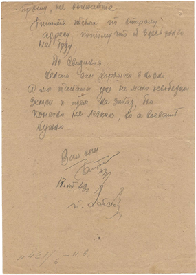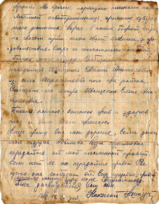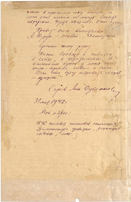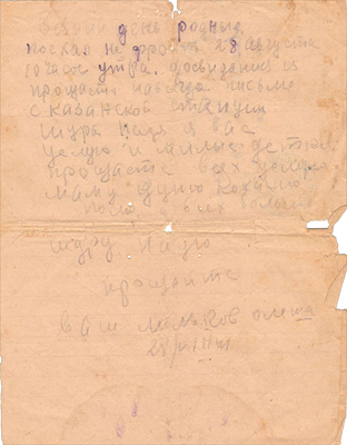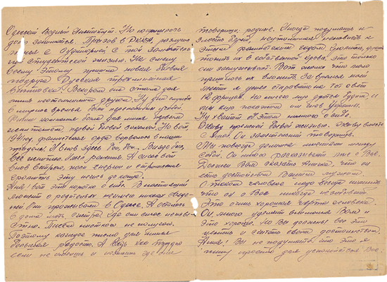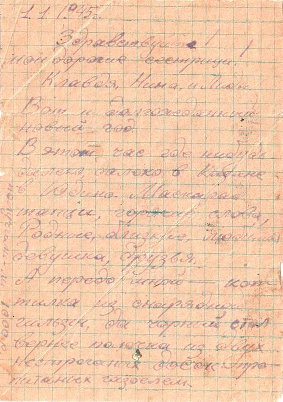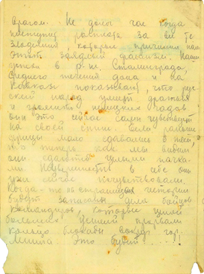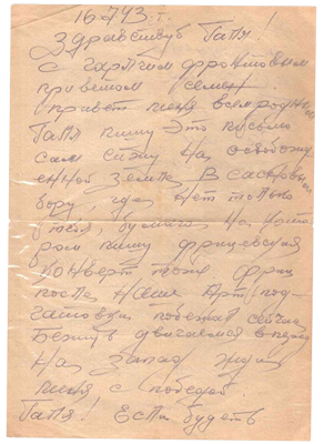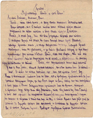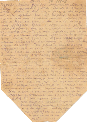История одного бойца. Он принимал участие в операции, был ранен, отправлен в госпиталь в Вологду, где узнал о начале контрнаступления под Москвой. Автор и адресат неизвестны. Похоже на дневник