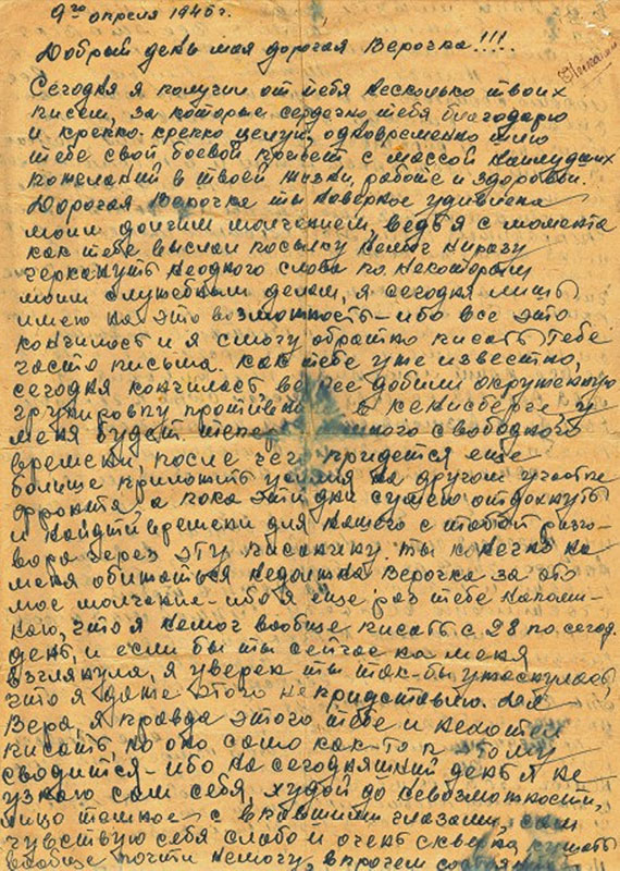 Их ждали месяцами, годами, а иногда и десятилетиями. Их писали в окопах, блиндажах и койках медсанбатов на любом клочке бумаги. Эти тексты важны не меньше, чем труды военных историков или официальная хроника. За каждой строчкой - стоит человек. Его военные будни, переживания, быт и семья, страхи и цели, психология и моральные устои. Сейчас ветхая бумага уже рвётся на сгибах, сделанных больше 75 лет назад. Выцветают чернила, стираются буквы. Мы собираем письма военных лет, оцифровываем их и собираем в одну библиотеку. Узнай всю правду о военных буднях «от первого лица».